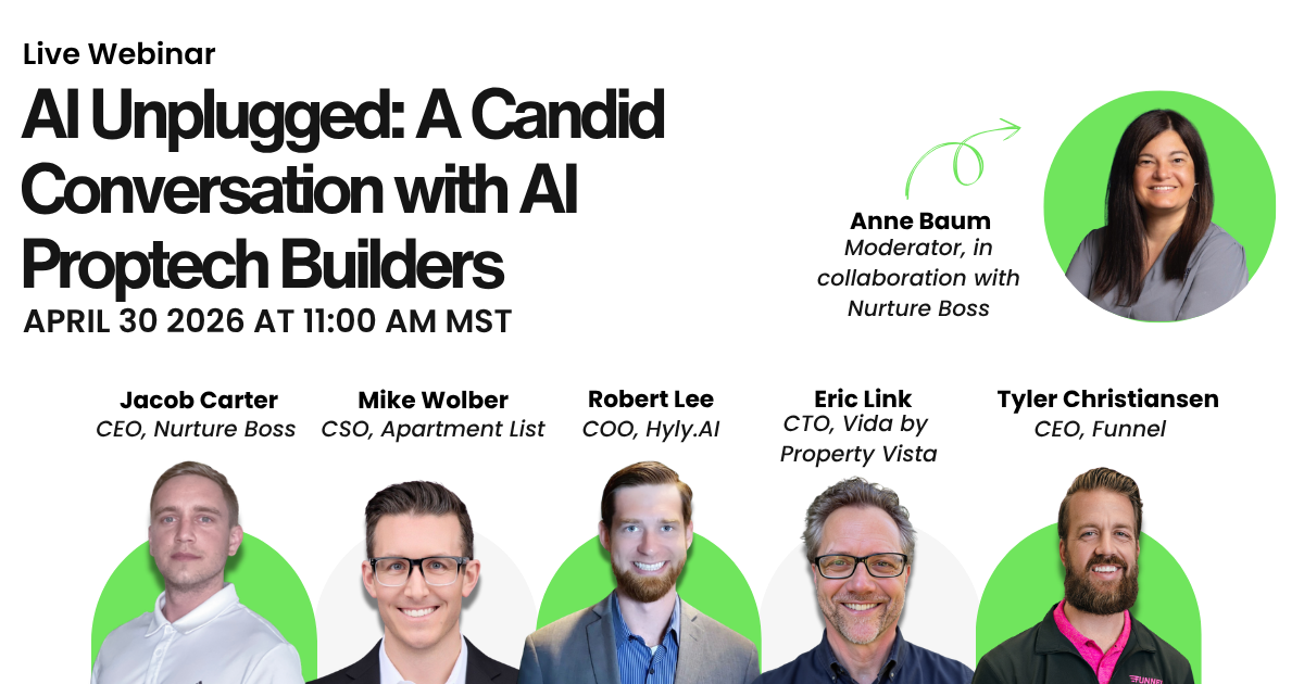 This webinar is brought to you by Nurture Boss and moderated by operator and co-host of The Apartment Department, Anne Baum, ensuring the conversation stays grounded.